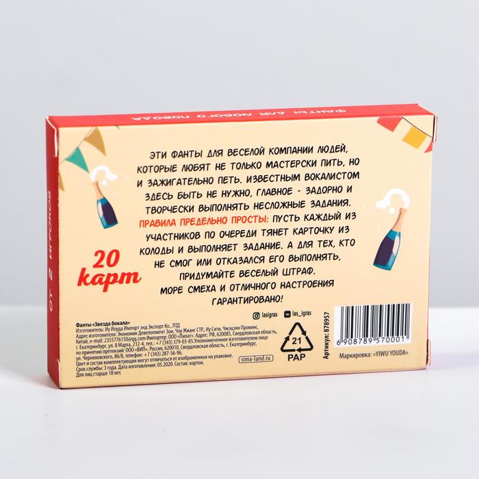 Купить игра для компании "фанты звезда бокала" 20 карт от 120 руб. с доставкой до пункта выдачи в Ртищево. Интернет магазин ДекаМаркет. Оплата при получении.