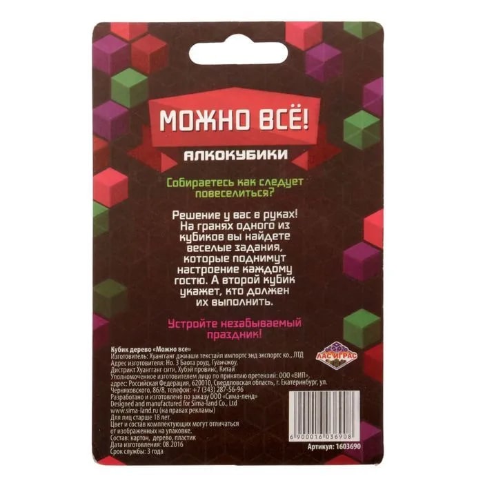 Купить кубик "можно все", алкокубики для принятия решений от 60 руб. с доставкой до пункта выдачи в Ртищево. Интернет магазин ДекаМаркет. Оплата при получении.