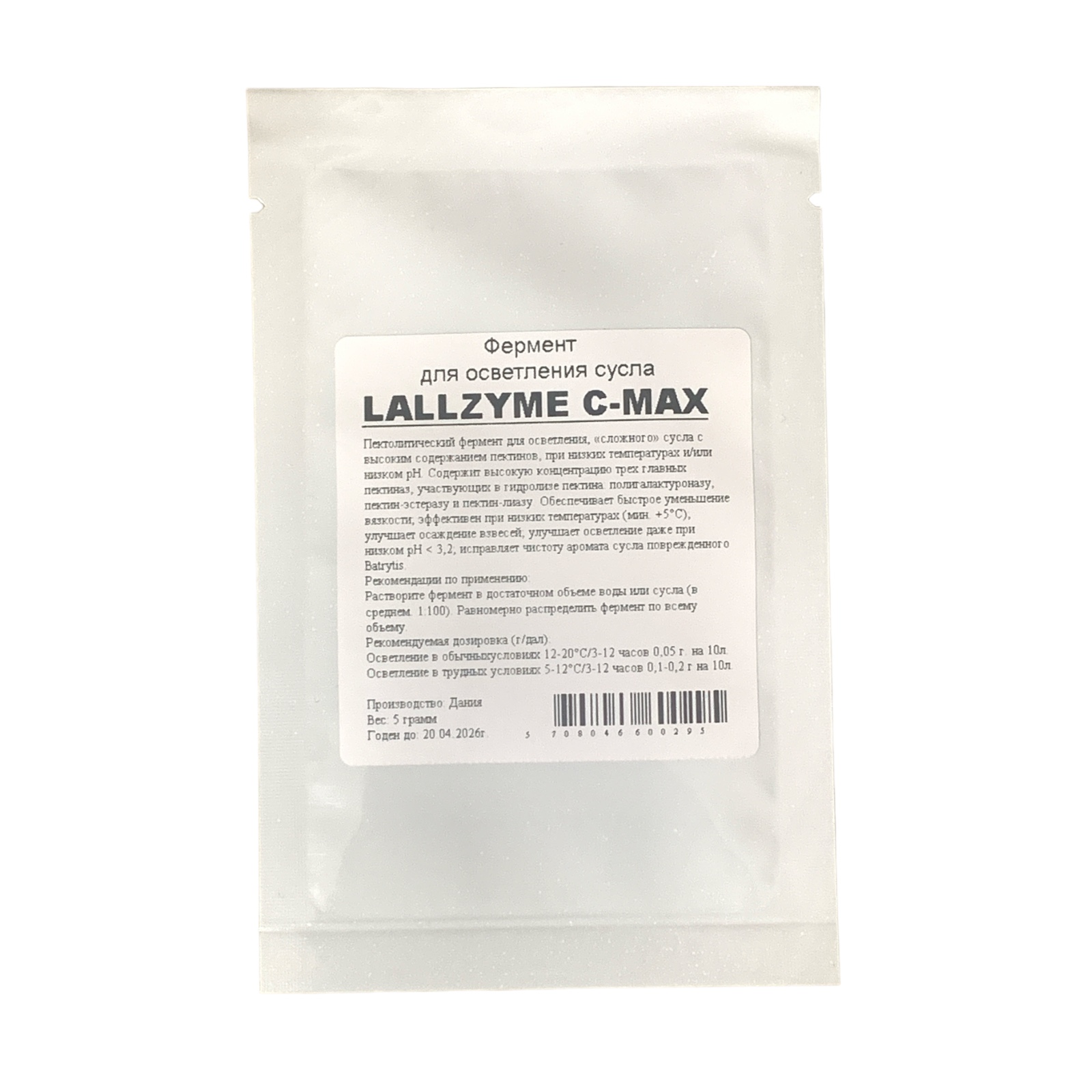 Фермент LALLZYME С–MAX, 5 грамм - для осветления сусла (белое, красное, яблочное).